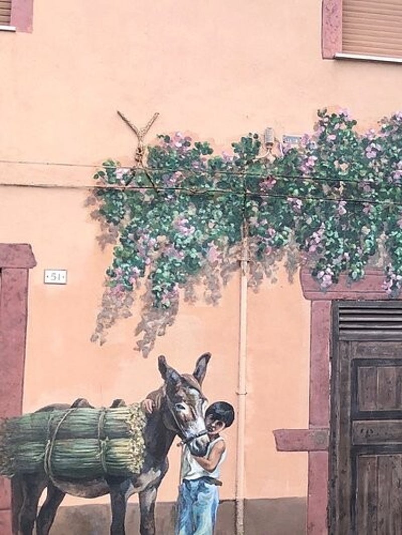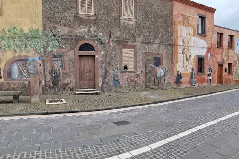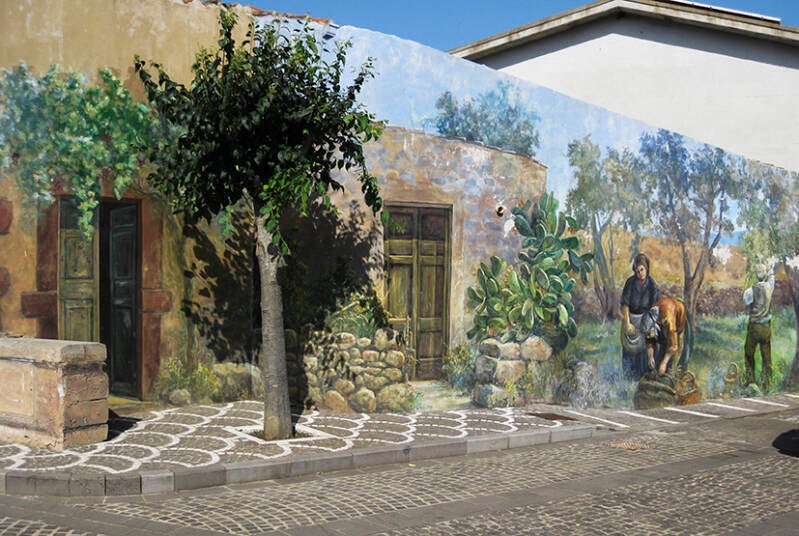 Le village est un musée « en plein air » d'art moderne : dans ses rues suggestives et ses places pavées, vous pourrez admirer des monuments et des statues d'artistes sardes (dont Simplicio Derosas et Pinuccio Sciola) ainsi que des peintures murales pittoresques réalisées sur les façades des maisons, représentant des moments de la vie rurale et villageoise. Vous serez également impressionné par la variété des couleurs des sols pavés en trachyte rouge, marbre blanc et basalte gris des rues, où vous verrez au printemps les fibres végétales exposées au soleil sécher, puis être utilisées dans la fabrication de paniers.