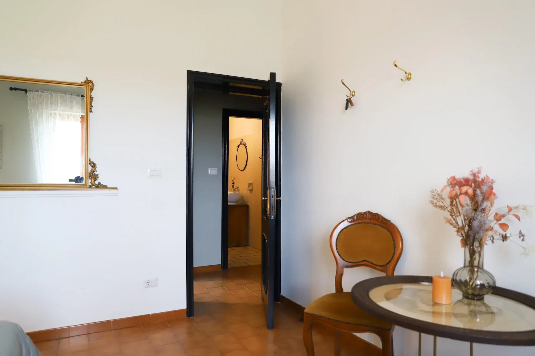 La chambre peut accueillir deux personnes et dispose d’une belle salle de bains privée avec une douche à l’italienne, idéale pour se détendre après une journée de découvertes.